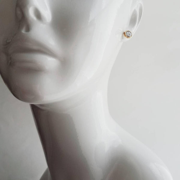 Cada pendiente mide aproximadamente 8 mm {aproximadamente 1/3 de pulgada} de diámetro. La longitud del arete y el poste desde una vista lateral es un poco más de 1/2 pulgada (aproximadamente 14 mm).
