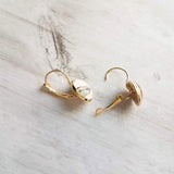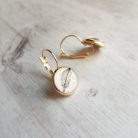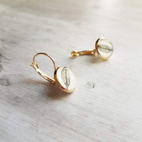 Dulces y sencillas fotografías de hojas en tono sepia impresas bajo cúpulas de vidrio macizo, engastadas en un arete de latón chapado en oro de 14 quilates. **NO SE MUESTRA, pero también está disponible como palanca trasera plateada, perno chapado en oro de 14 mm, perno plateado de 14 mm; comuníquese conmigo para solicitar esas opciones. La última foto del modelo es de un color diferente; se muestra solo como referencia de tamaño.