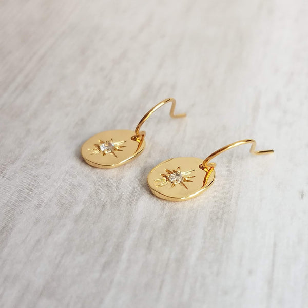 Ligero y fácil de usar, este óvalo de oro pulido tiene una forma orgánica intencionalmente desigual y tiene una circonita cúbica brillante en el centro. Parte trasera lisa. Ganchos para las orejas sencillos. Todo metal de latón chapado en oro. ¡Estos aretes vendrán con pequeños respaldos de goma transparente que te permitirán usar tus aretes de manera más segura, si así lo deseas! Ahora disponible con ganchos mejorados de oro SÓLIDO de 14K o de relleno de oro de 14K; estos pueden ser una excelente opción para personas con sensibilidad al metal. NINGÚN metal es completamente hipoalergénico para todas las personas. La última foto muestra mis otros aretes "North Star", que se venden por separado aquí: https://www.etsy.com/listing/850491884/north-star-earrings-tiny-gold-celestial?ref=shop_home_active_43